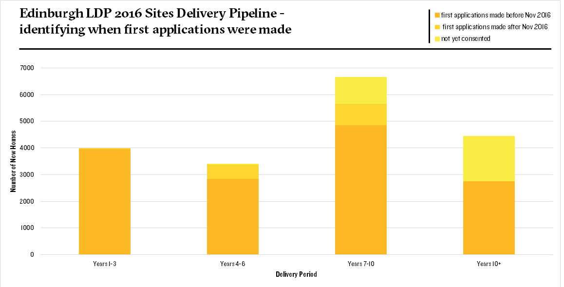 For Edinburgh more than 80% of homes delivered / programmed to be delivered in the 10-year period following the adoption of the 2016 LDP were in the planning system before the plan was adopted.